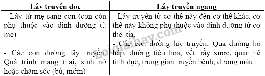 | Phân biệt phương thức lây truyền ngang và lây truyền dọc của virus trên người và động vật. |