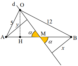 \frac{k}{m} = \frac{{OA – OB}}{{HA – HB}} = \frac{{5 – 12}}{{\frac{{25}}{{13}} – \frac{{144}}{{13}}}} = \frac{{13}}{{17}} \Rightarrow \left\{ {\begin{array}{*{20}{l}}