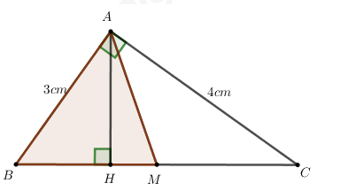 Cho tam giác ABC vuông tại A, đường cao AH. Gọi M là trung điểm của BC. Biết AB = 3 cm, AC = 4cm. Tính độ dài đường cao AH và diện tích tam giác ABM.