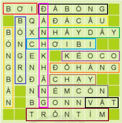 Tìm tên 14 trò chơi và môn thể thao trong ô chữ dưới đây. Hãy kể cho các bạn nghe về môn thể thao mà em thích.