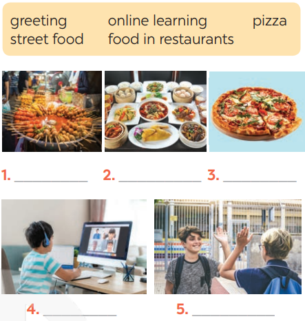 (Điền vào mỗi bức tranh một từ hoặc cụm từ trong hộp.)