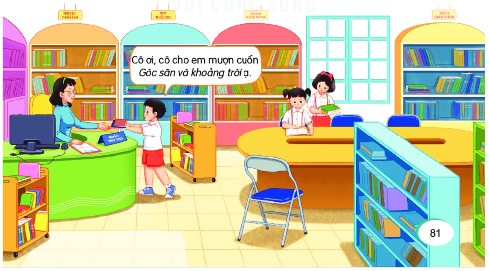 – Cô ơi, cô cho em mượn cuốn sách này nhé!