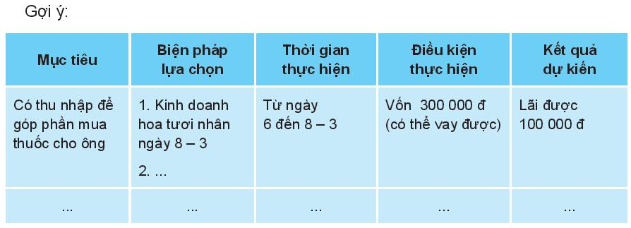 Hãy chọn biện pháp phát triển kinh tế gia đình phù hợp với nhu cầu và khả năng của em để lập kế hoạch thực hiện.