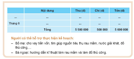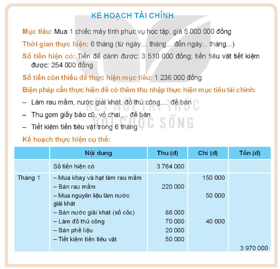 – Mục tiêu kế hoạch: mua 1 chiếc máy tính phục vụ học tập, giá 5 triệu đồng.