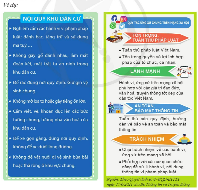 + Những nội quy, quy định của cộng đồng, địa phương, khu dân cư.
