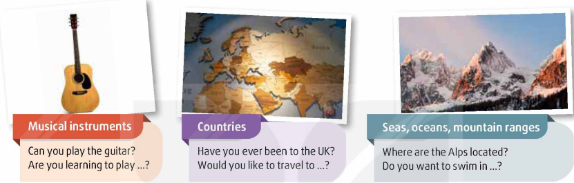 2. Work in pairs. Ask and answer questions about the following topics using the correct articles.