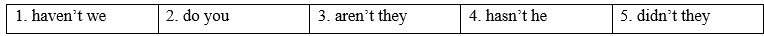 (Viết câu hỏi đuôi cho câu 1-5.)