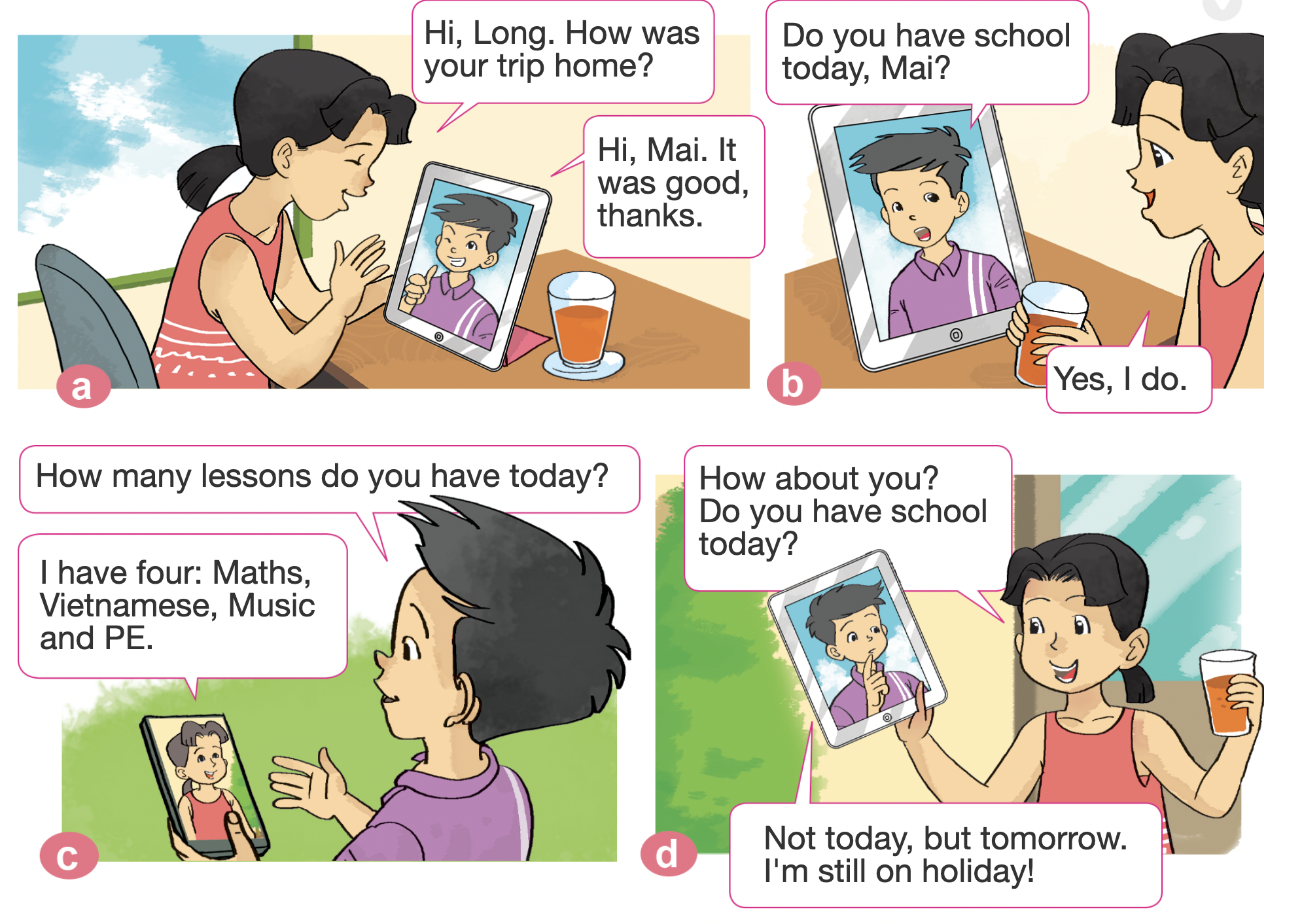 c. How many lessons do you have today? – I have four: Maths, Music, Vietnamese, PE.