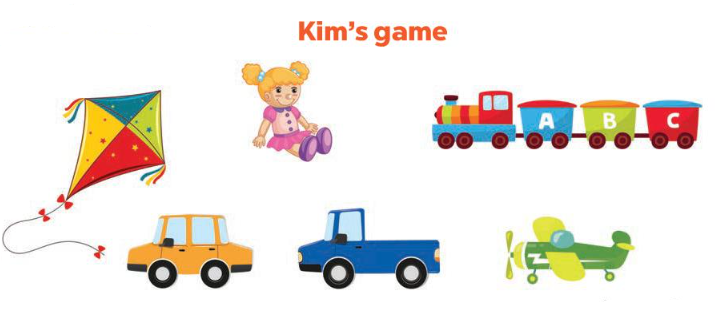 Cách chơi: Nhìn vào hình, đây là những món đồ chơi của Kim. Dùng mẫu câu “Kim has ___.” để đặt câu.