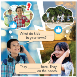 Let's Talk! In pairs: Look at the picture. What are the children doing? What else can children do for fun in the country? New Words a. Read the sentences, then match the words with the definitions. Listen and repeat. b. In pairs: Talk about what you like to do when you visit places in the country. Reading a. Read Vy's blog post. What does she mostly talk about? b. Now, read and circle the correct answers.