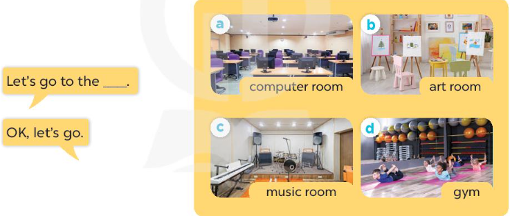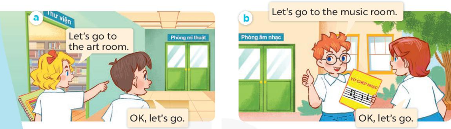 a. Let’s go to the art room. (Chúng mình cùng đi đến phòng mỹ thuật nhé.)