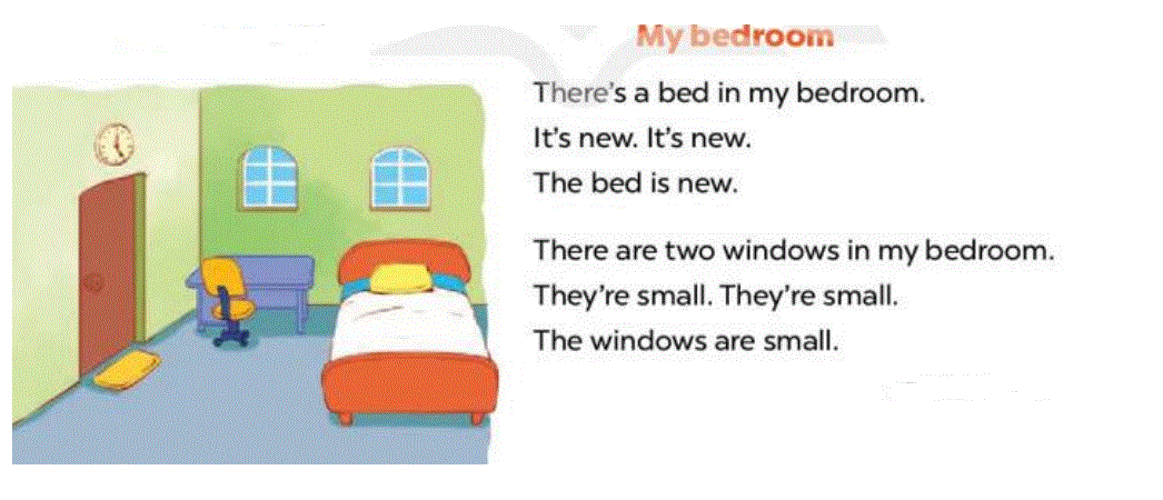 a. There is a bed in my bedroom. It’s small.
