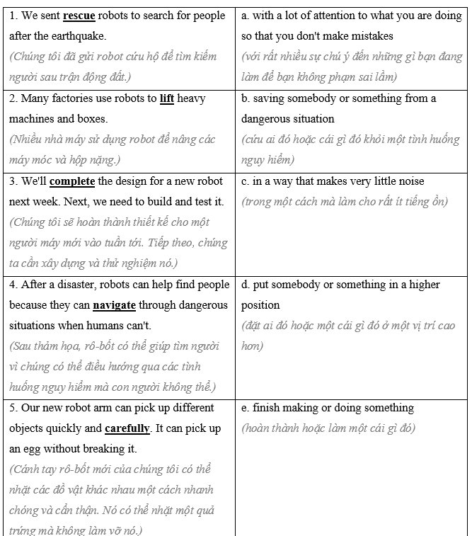 (Nối các từ được gạch chân với các định nghĩa. Nghe và nhắc lại.)