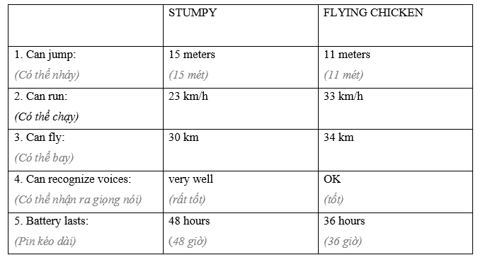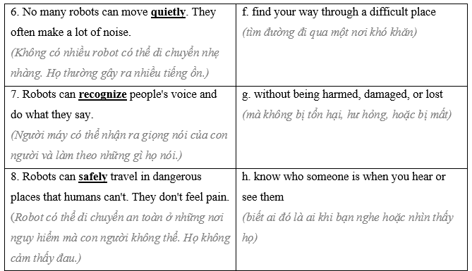 (Bạn đang thảo luận về những robot nào có thể phù hợp với các công việc khác nhau. Làm việc theo cặp: Thảo luận và chọn rô-bốt mà bạn cho là tốt hơn cho từng công việc và nói lý do.)