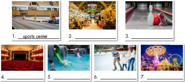 a. Match the words with the pictures. Listen and repeat. b. In pairs: Say what activities you can do at each place using the verbs in the box. a. Listen to Becky calling Toby to make plans to meet. Which place will they visit together? a. Listen to Becky calling Toby to make plans to meet. Which place will they visit together? b. Now, listen and circle. c. In pairs: Where do you like to meet your friends? What do you do there? Starting a friendly conversationa. Listen and repeat. b. Circle the c