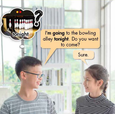 Boy: I’m going to the bowling alley tonight. Do you want to come?