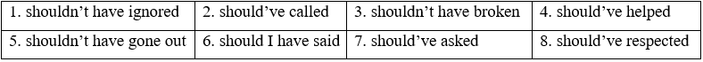 B: He should’ve come home on time. He shouldn’t have stayed out late.