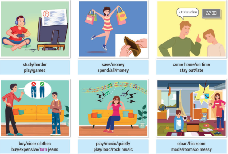 (Làm việc theo cặp: Hành vi nào không được chấp nhận trong gia đình bạn? Khi nào bạn phải xin phép bố mẹ?)