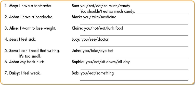 Sử dụng “should/shouldn’t” để đưa ra lời khuyên nên làm gì hoặc không nên làm gì.