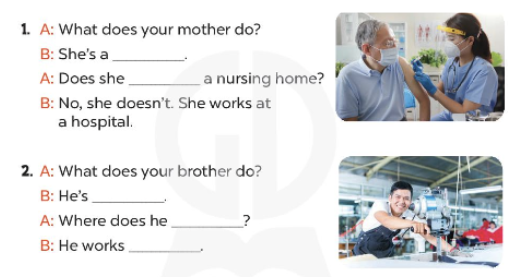 1. A: What does your mother do? (Mẹ bạn làm nghề gì?)