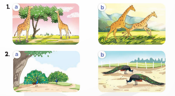 (Những con vật này có cái cổ dài và chân dài. Chúng là gì?)