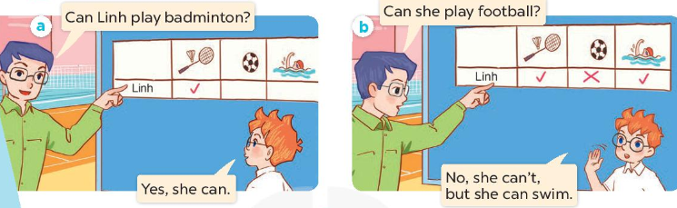 Can Linh play badminton? (Linh có thể chơi cầu lông không?)