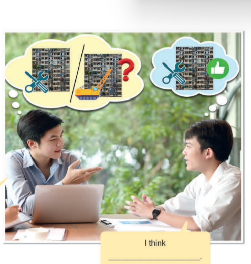 Quân: I’ve been thinking about that. I think we should change the empty apartments into closed stores or even a museum. It was a popular idea in my city. And we can keep the original look of the outside of the building. What’s your opinion?