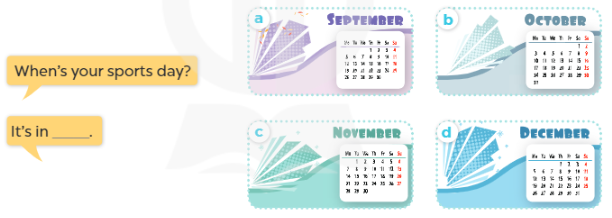 2. A: When’s your sports day? In November? (Khi nào ngày hội thể thao của bạn diễn ra vậy? Tháng 11 sao?)