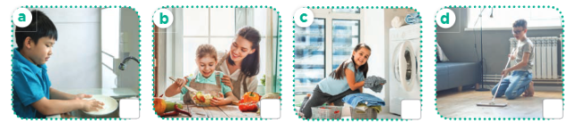 B: I help my mum with the cooking. (Tớ giúp mẹ nấu ăn.)