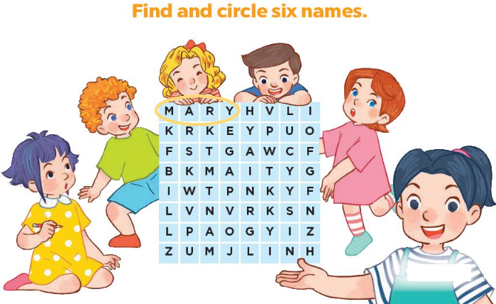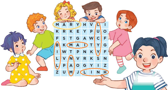(Tìm và khoanh tròn 6 cái tên.)