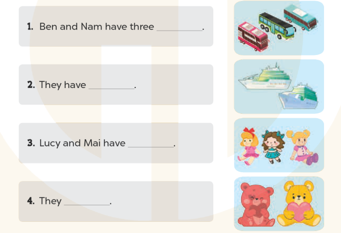 3. Lucy and Mai have three dolls. (Lucy và Mai có 3 con búp bê.)