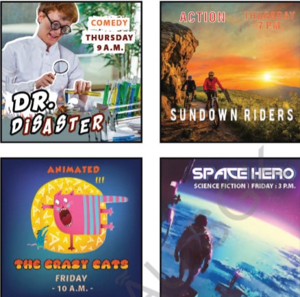 (Học sinh B, hãy nhìn vào hình ảnh của các áp phích phim dưới đây và viết ra những gì bạn nghĩ chúng như thế nào dưới mỗi bức tranh. Trả lời câu hỏi của Học sinh A. Hoán đổi vai trò và quay lại trang 59. Hoàn thành bảng với câu trả lời của Học sinh A.)