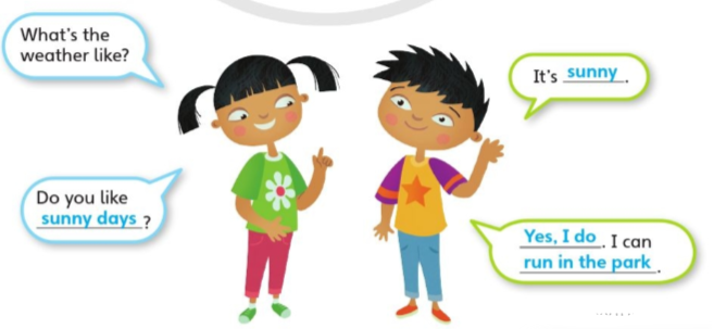 3. Lucy: I like cloudy/ rainy days. I can run/ jump in the rain.