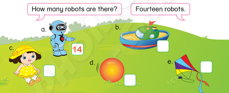 4. Có bao nhiêu quả bóng ạ? – Mười bốn quả bóng.