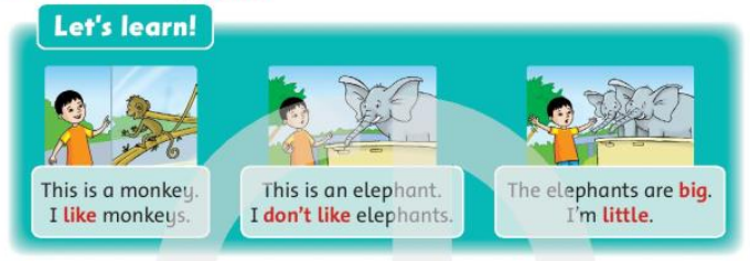 Oh, no! I don’t like elephants. They’re big! (Ồ, không! Tôi không thích voi. Chúng to quá!)