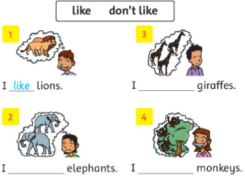 2. I don’t like giraffes. (Thôi không thích hươu cao cổ.)