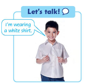 I’m wearing a white shirt. (Tôi đang mặc áo sơ mi trắng.)