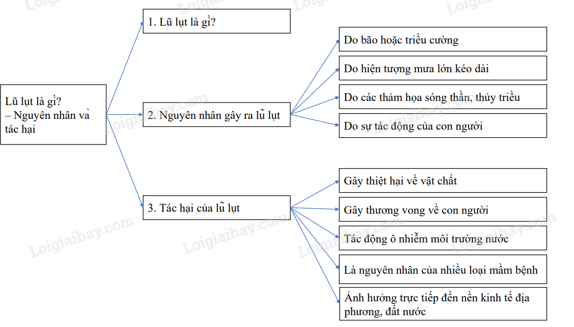 + Phần “Nguyên nhân gây ra lũ lụt”: người viết triển khai thành các ý lớn đưa ra các nguyên nhân gây ra lũ lụt.