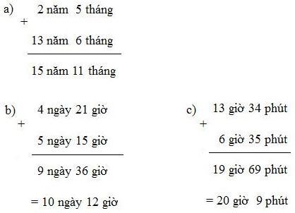 a) 2 năm 5 tháng + 13 năm 6 tháng;