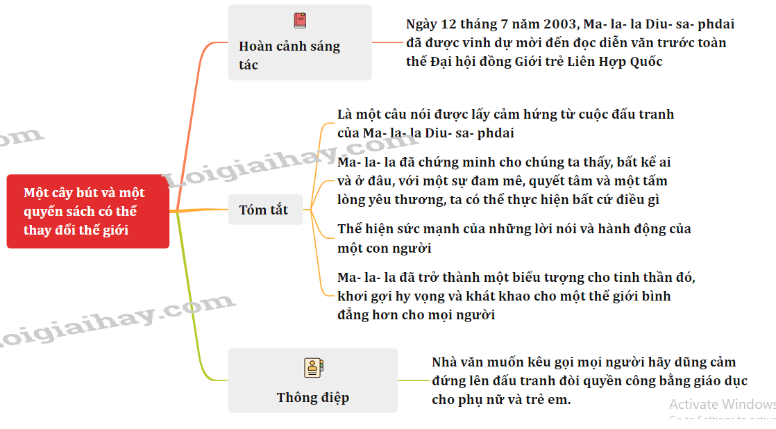 Sơ đồ tư duy Tác phẩm một cây bút và một quyển sách có thể thay đổi thế giới