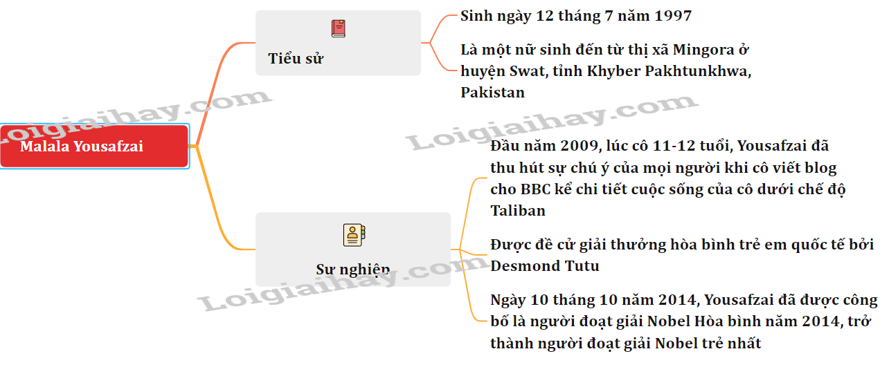 Sơ đồ tư duy Tác giả Malala Yousafzai