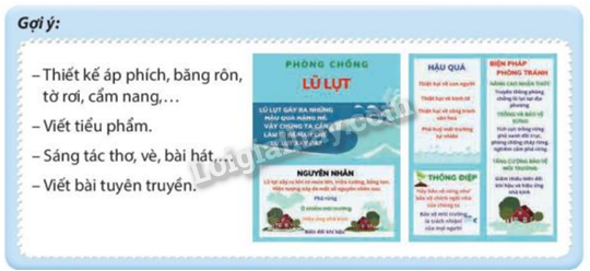 Phương pháp giải: Nghiên cứu, tìm hiểu và tự thiết kế những sản phẩm để tuyeen truyền phòng tránh thiên tai, giảm nhẹ rủi ro do thiên tai gây ra.