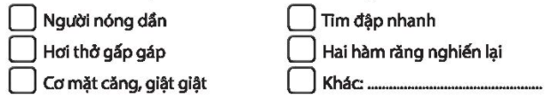 Đánh dấu X vào ô trước những biểu hiện của cơ thể em khi nóng giận. Điền thêm biểu hiện khác của em vào chỗ trống.