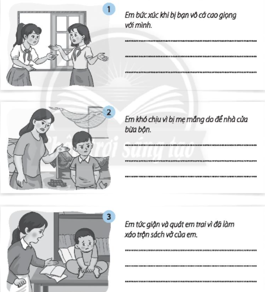 Viết những việc em làm để kiểm soát nóng giận trong các tình huống dưới đây: