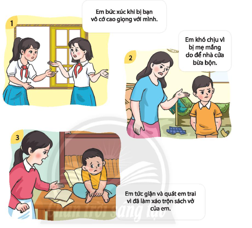 –   Tình huống 3: Em hít thở sâu và nói nhỏ nhẹ với em trai rằng lần sau không được xáo trộn sách vở của em nữa.
