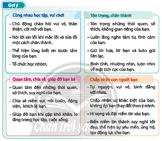 – Cùng bạn xây dựng tình bạn tốt đẹp, trong sáng, lành mạnh.