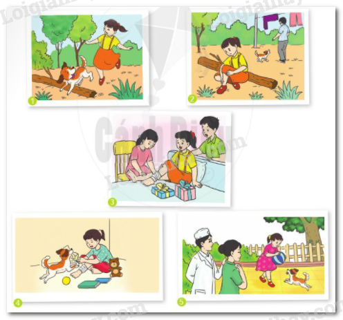 Em dựa vào truyện Con chó nhà hàng xóm và các bức tranh để kể lại từng đoạn tương ứng.