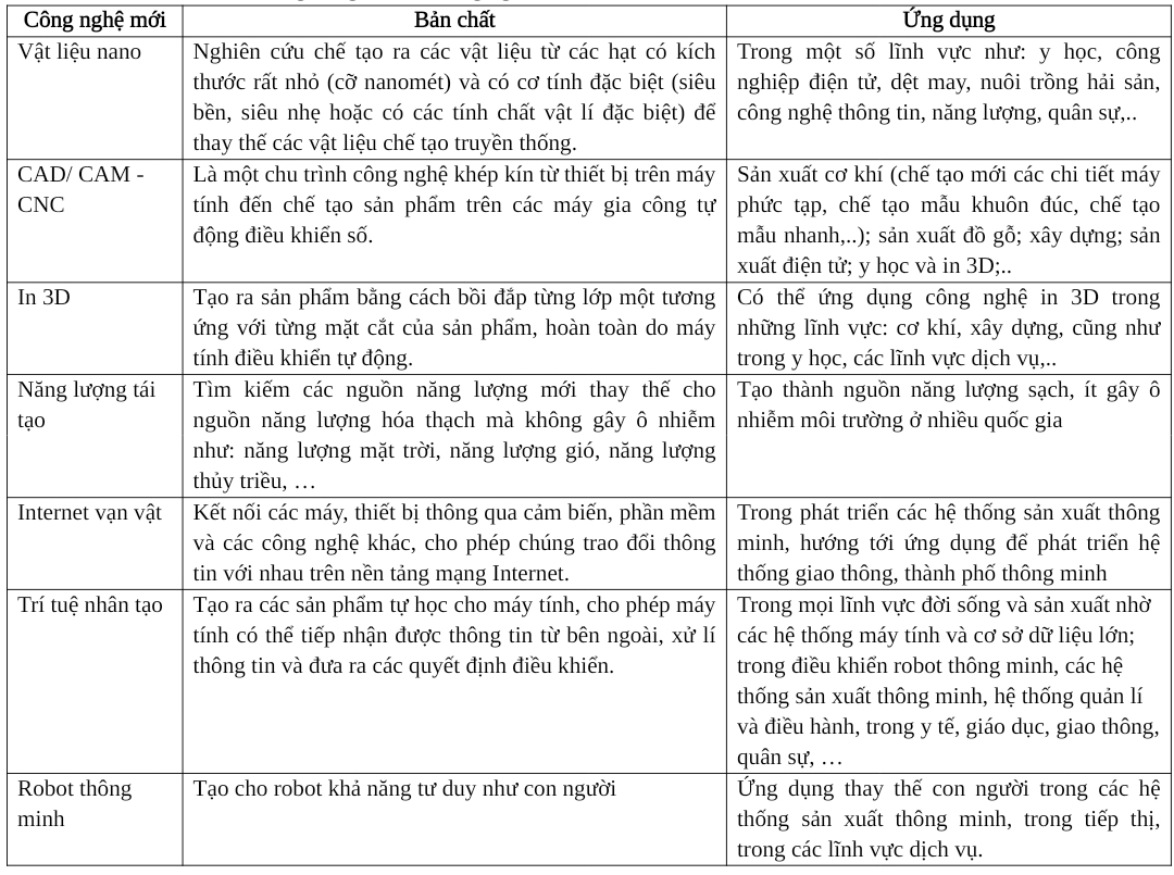 3. Hãy kể tên một số công nghệ mới, nêu bản chất và ứng dụng của các công nghệ đó.