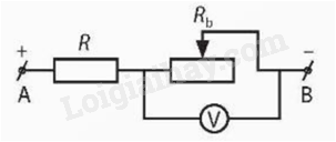 Cho đoạn mạch điện AB như hình bên. Điện trở R có trị số 10 Ω. Khi biến trở Rb được điều chỉnh từ giá trị 0 đến 40 Ω thì số chỉ nhỏ nhất và lớn nhất của vôn kế bằng bao nhiêu? Biết UAB = 12 V.