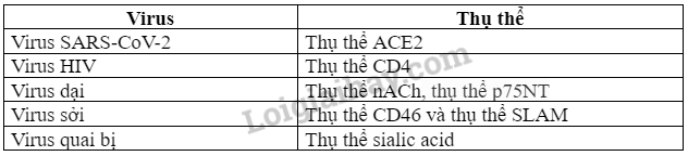 Tìm ví dụ minh hoạ cho các loại virus theo nội dung bảng sau. Hãy kể tên một số virus gây bệnh ở người và chỉ ra các thụ thể trên tế bào vật chủ của các virus này.